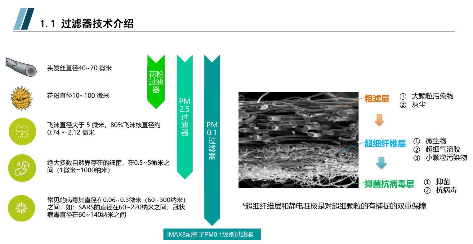 除了空调循环系统之外,想要得到更好的空气质量,更为重要的自然就是空间的过滤系统了。荣威iMAX8的两套循环系统配备了PM0.1级别的过滤器,过滤层分为粗滤层、超纤维层、抑菌抗病毒层三层,层层递进,可以过滤大颗粒污染物、灰尘、微生物、小颗粒污染物,抗病毒层则有用出色的抑菌效果。仅仅是过滤?荣威iMAX8要做的远远还不够。