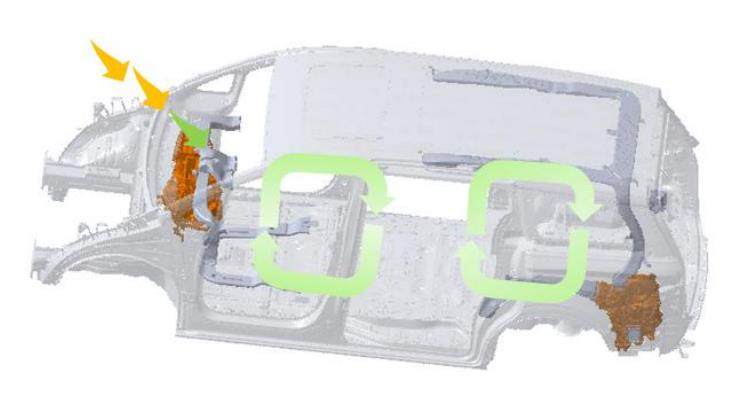 所以到了荣威iMAX8上就“反其道而行之”,打造了一个正压舱,顾名思义,就是车内气压略高于车外气压,这样车外的污染物就无法随空气不经过滤进入车内,因为汽车并不是一个完全密封的环境,除了空调循环系统之外,车身各处都存在缝隙会和外界发生少量空气交换,所以正压舱就保证了外部空气只能经过“正规渠道”进入车内。