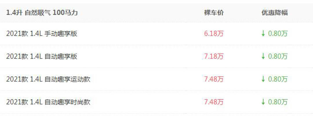 让人拍手叫绝的地方还是价格,目前2021款的奕跑市场上已经有8000元左右的购车优惠了,其中最低配车型裸车价仅需6.18万元。不过最推荐购买的还是自动趣享版,与高配车型相比,该车型仅缺少了自动空调和侧气囊,其余地方差距不大,而且目前落地不到9万元,性价比极高。
