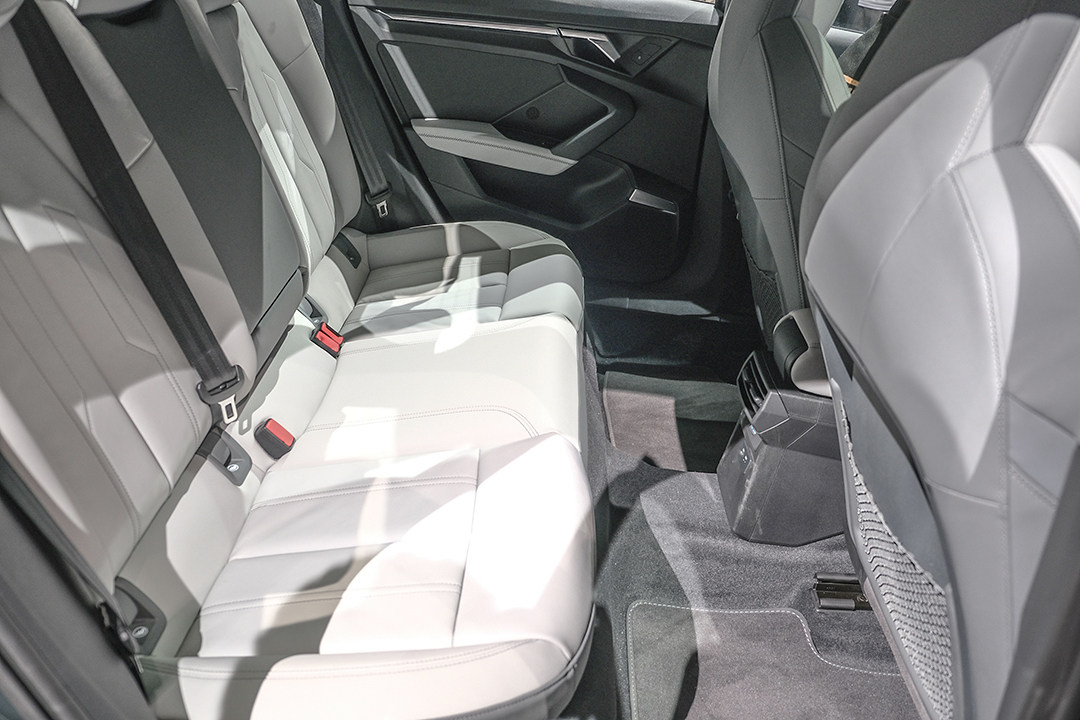 而且有个小细节,奔驰A级的后排坐垫中间有突出,可以给大腿足够的承托,相比之下新的A3L坐垫长度比较中规中矩,而且A级的靠背角度比A3L更躺,A3L的座椅靠背比较直立一点。