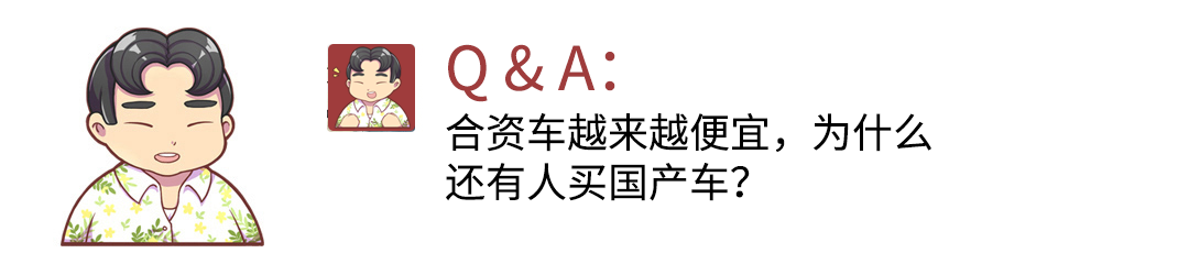 合资车虽然也卖得越来越便宜,但越来越不厚道,除了标着合资品牌的身份,车子的质量越来越不行,各种的减配也让消费者不再趋之若鹜。同价位情况下,国产车是“三房一厅外加精装修”,合资车则是“简陋的一房一厅”,无论配置、空间、动力,还是驾乘体验方面,国产车都是优于合资车的。合资车唯一优势还在于品牌附加值和知名度,以及稍微那么一丢丢的品质和保值率。