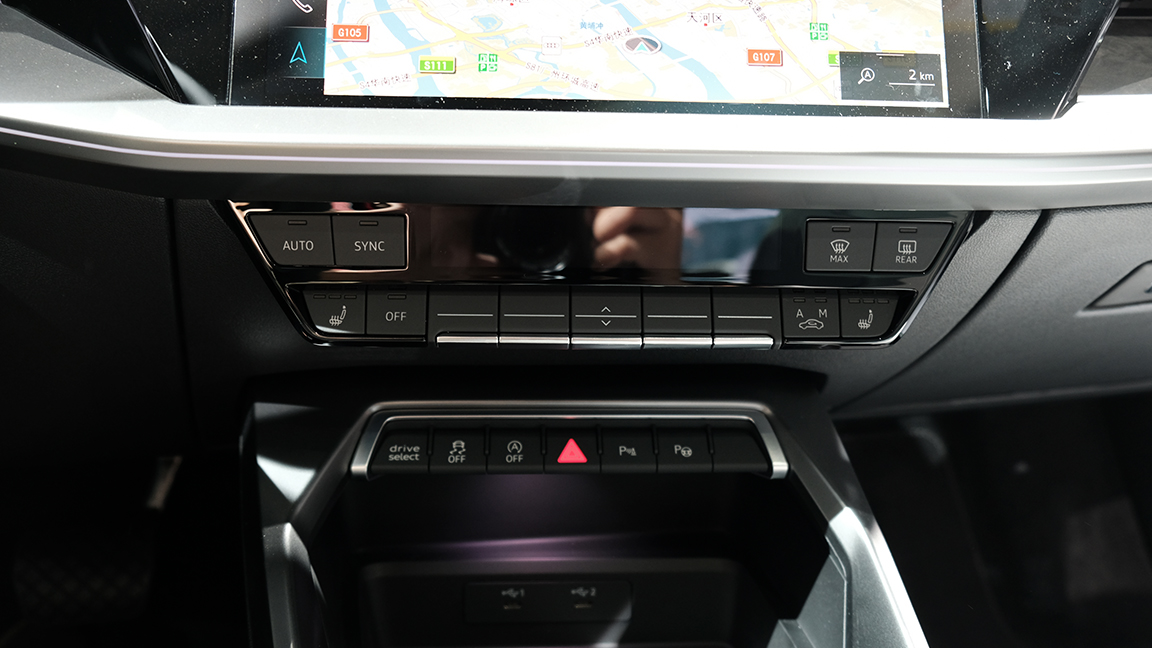 而中控下方的空调触控区域并没有采用奥迪最新的液晶显示,或许这是车型定位的原因,不过教授觉得拨杆调节+小尺寸屏幕显示用起来会更加方便,而且该车上的功能按键分配的比较清晰。