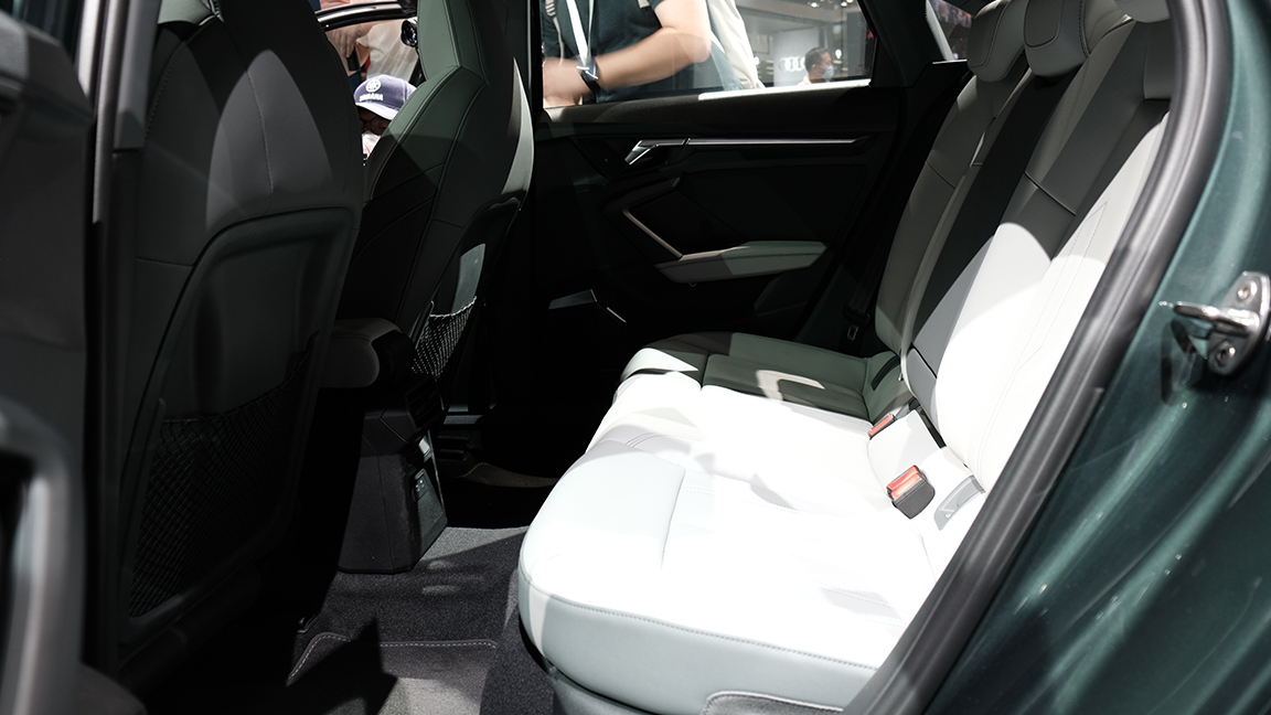 后排的空间提升还是很明显的,奥迪A3L的到来解决了此前一直被诟病的后排较窄问题,对于偏向家用使用大空间的群体无疑是好消息,同时还能看到后排还配备了空调出风口和两个Type-C插口。
