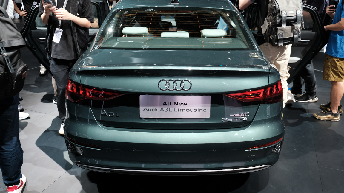 车尾来看,国产全新奥迪A3采用了最新的奥迪家族式设计,一眼看上去还有点A4L的感觉,其换装了全新样式的狭长尾灯组,内部点亮后更具辨识度,此外下方包围还带有运动装饰套件。