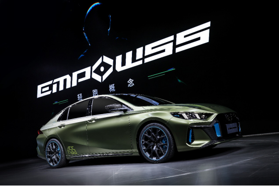 广汽传祺在车展上带来了代号为EMPOW55的全新车型。EMPOW55寓意着GPMA架构所带来的55项体验升级,在融合活力、年轻化的平台特性之外,通过低车高、短前悬、宽轮距、长轴距、大车宽的设计,营造低趴的视觉感,搭配跑车般的大溜背,打造出远低于同级别的0.26超低风阻,实现造型与性能的完美统一。作为广汽传祺全新品牌形象的代表之作,EMPOW55是一款具有未来前瞻性意义的产品,不仅展现大胆的设计风格和前沿科技的创想,更为中国年轻消费者带来了一款买得轻松、开得愉悦、拥有跑车气质的运动轿车倾心之选,陪伴他们追求个性和梦想,一起开启“轻跑”新活力。