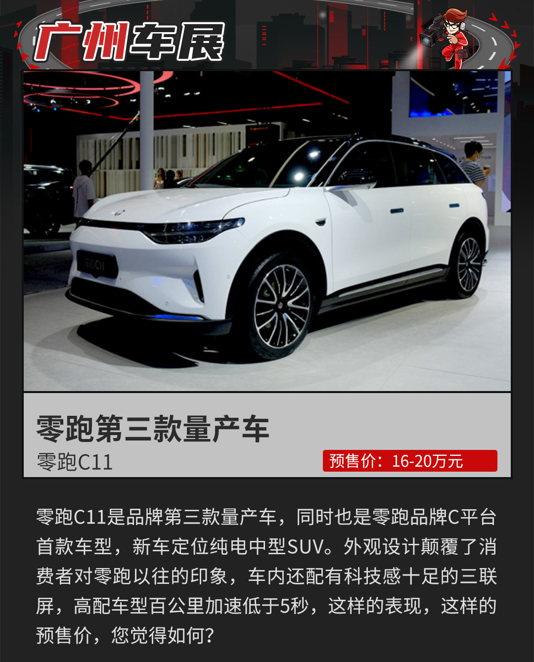 中国新能源新势力造车品牌零跑,继S01、T03之后,在本次广州车展上带来了品牌第三款量产车型——零跑C11,同时也是零跑C平台的首款车型。