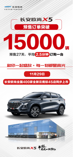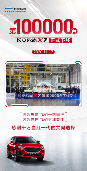 其中,长安欧尚X7在竞争最为激烈的紧凑级SUV市场进入自主品牌前十,连续环比增长。就在11月17日,长安欧尚X7完成第十万台下线,迎来了一个新的里程碑。而另外一款战略产品长安欧尚X5同样表现优异,预售即爆款,自10月20日正式开启全球预售,27天订单突破15000台,平均2.5分钟订购1台。