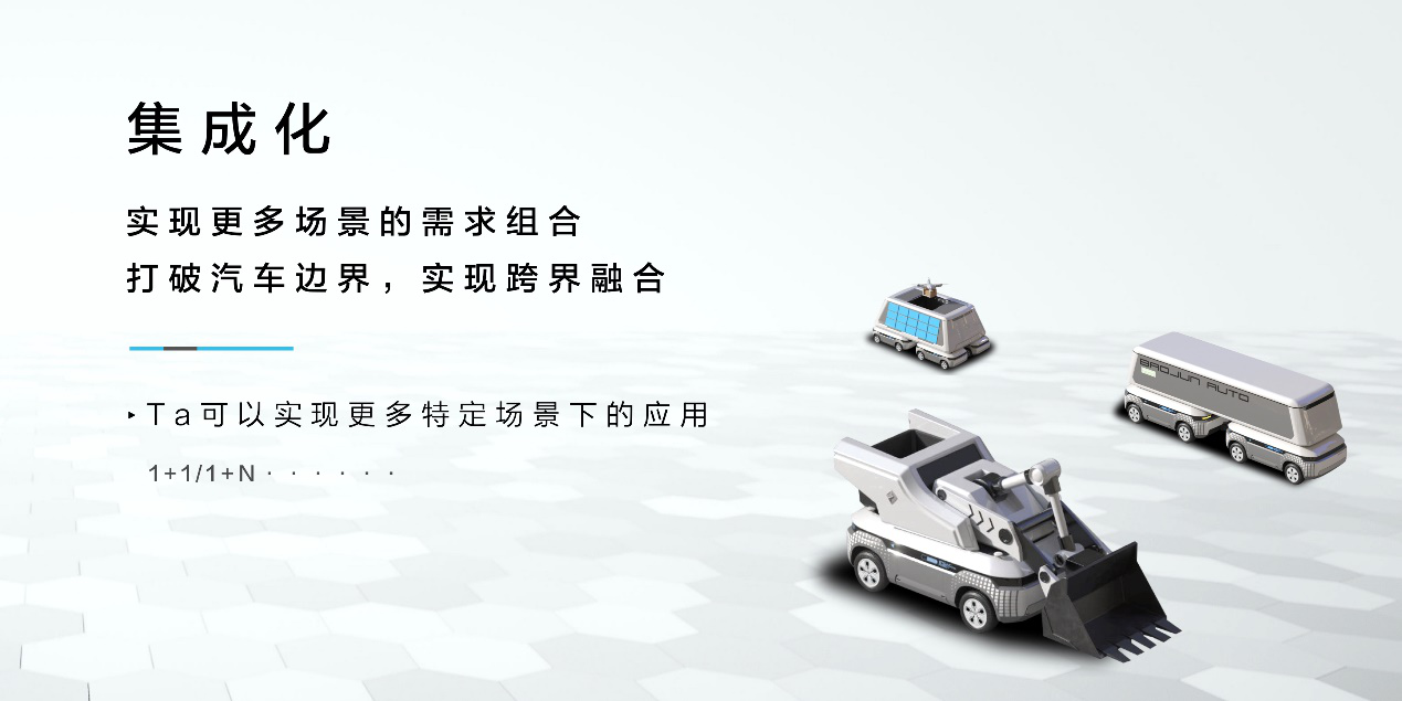 “新宝骏智慧魔方”是具备模块化、集成化特性的移动智能架构,是新宝骏移动智能空间1.0版本,把“通讯模块、驾驶模块、能源模块、驱动模块”等功能进行了模块化整合,并基于底盘将部件集成化,可实现1+1、1+N的功能延展,针对实际应用场景进行功能组合,延展出无人物流车、移动能源块、移动信号基站、无人接驳车等智慧产品,可广泛适用于各种应用场景。