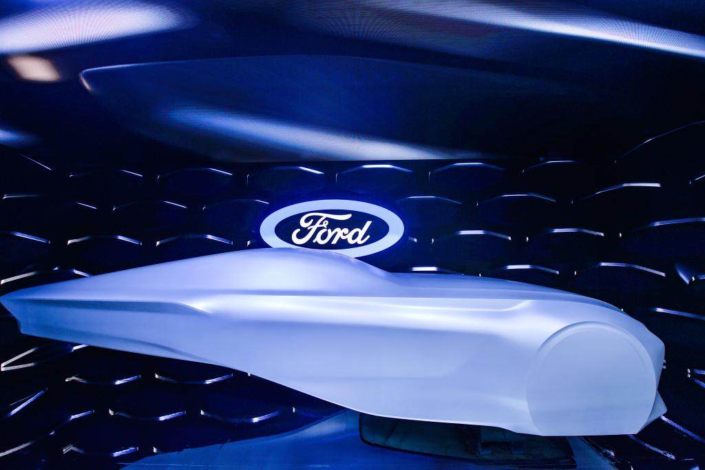 首先,大家从艺术装置侧面可以明显感觉到流畅的空气动力学展现,非常有速度感,这是福特在视觉上对于速度、对于赛道精神追求的体现。包括一直从引擎盖贯穿到车尾,非常犀利的线条,以及整车非常动感的姿态,都体现了“势能美学”中“动”的概念。我们希望未来的产品能够给消费者以最直观的视觉上的信息传递,通过造型特征让消费者一看到就感觉这是一台速度很快的车,这也是福特设计一直以来所追求的。