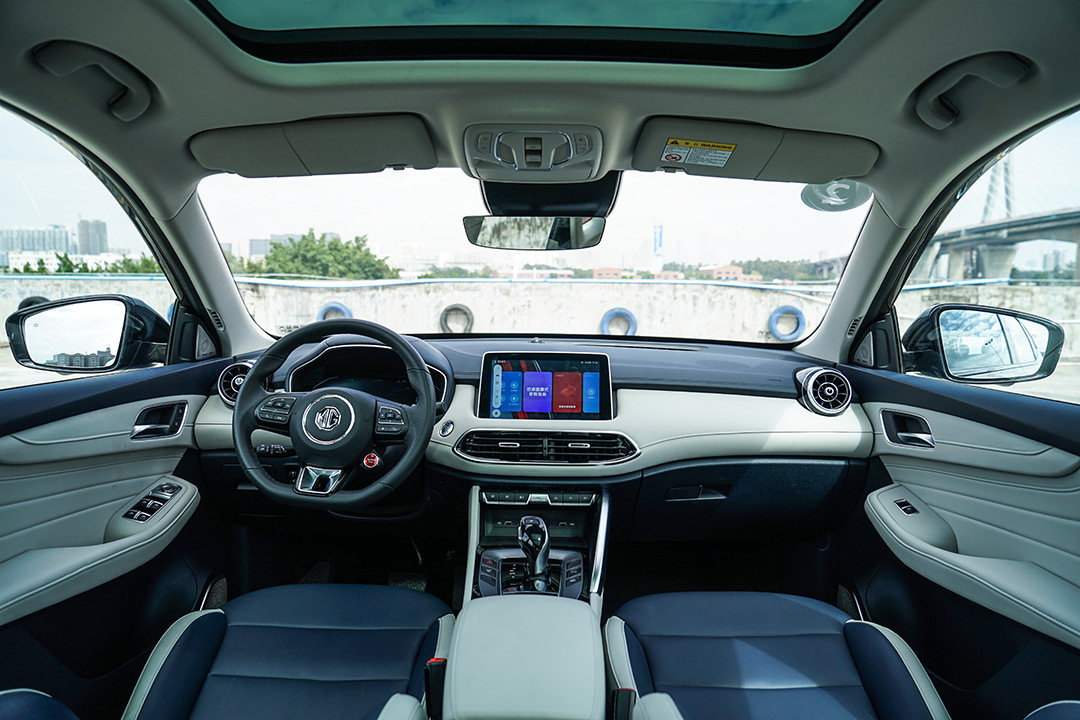 MG领航的中控使用对称式设计,12.3英寸的液晶仪表盘和10.1英寸的悬浮中控屏都让整车的科技感十足。