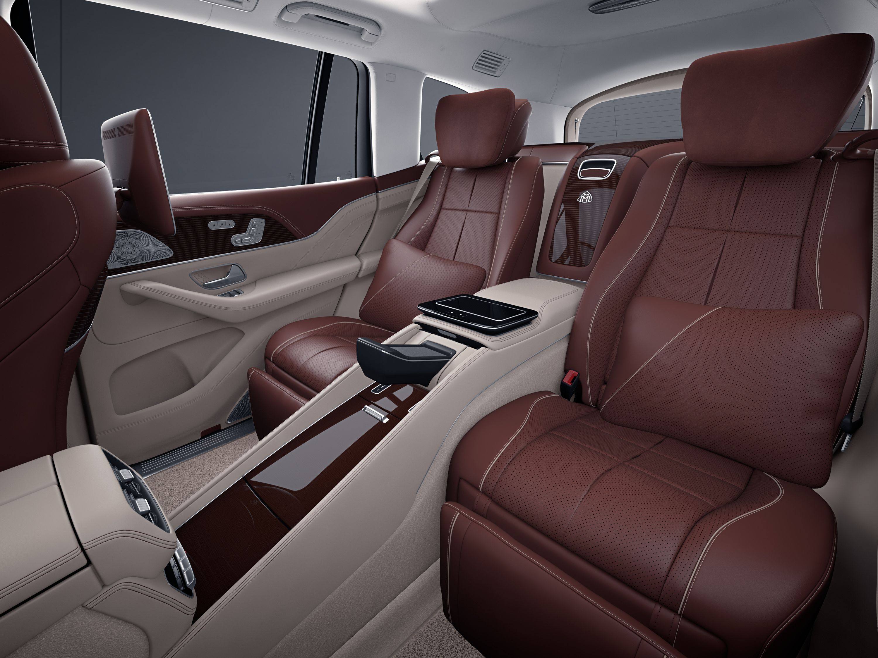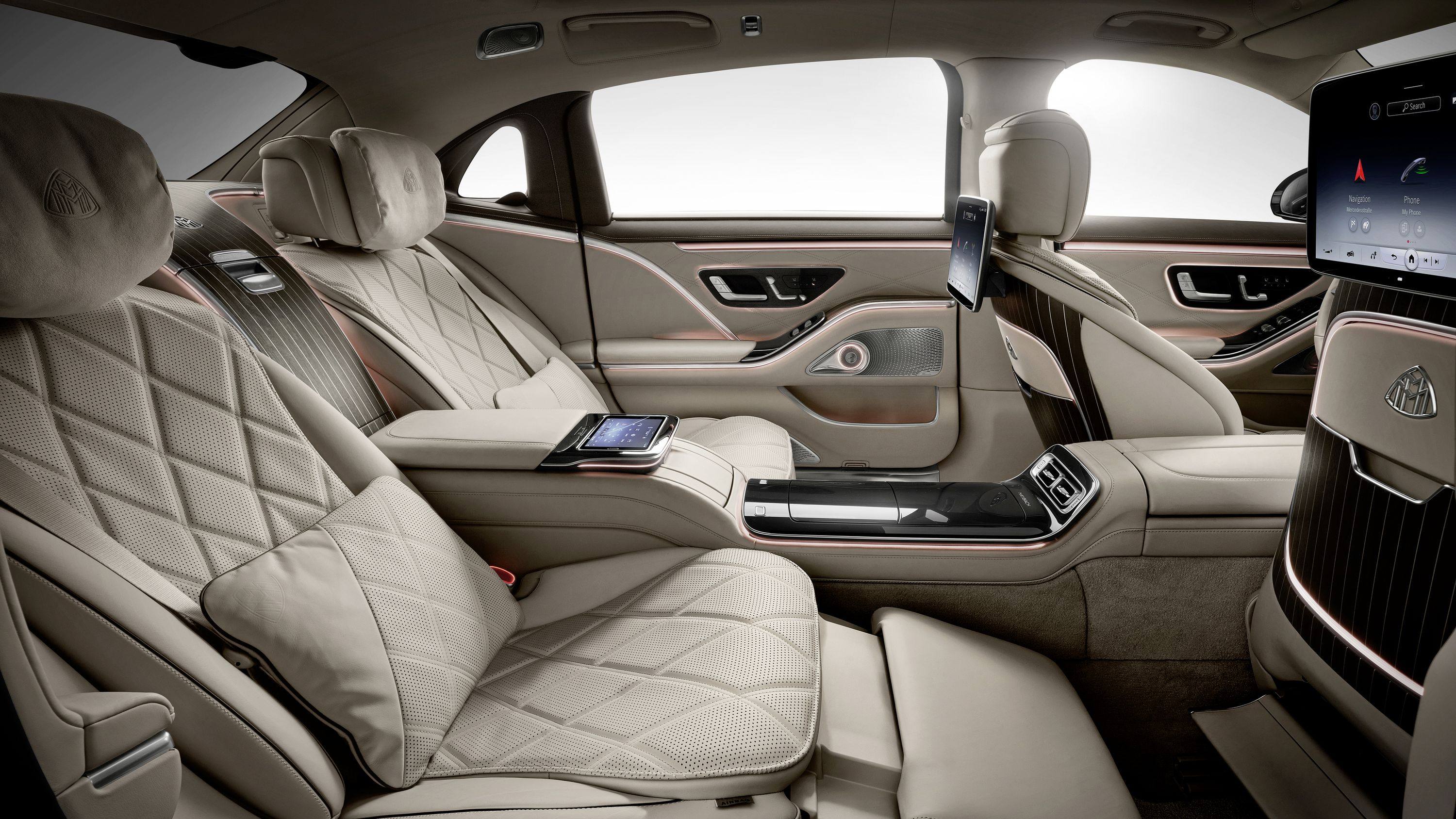 全新迈巴赫S级轿车拥有3,396毫米的超长轴距,与全新S级轿车相比,增加的180毫米完全应用于后排,赋予后排乘客超越头等舱般的豪华体验。电动舒适后门可通过7种方式控制开闭,比如通过同级独有的后排智能感应助理进行手势控制,或可通过一键操控,使进出车辆的过程充满优雅仪式感。打开车门,采用菱形格双缝线的Nappa真皮座椅如同精美艺术品,与灵感来自豪华游艇甲板的大面积垂瀑式开孔木饰相映成趣,带来绝佳的触觉和视觉享受。后排双独立行政座椅靠背最大倾斜角度可达 43.5°,配合带有按摩功能的电动伸缩腿托和肩颈部加热功能,带来深层次的身心放松享受。同时乘客还能通过多座互联娱乐系统将影音内容、导航信息和畅心醒神功能分享给同行其他乘员,后排7英寸平板还可以控制最新一代MBUX智能人机交互系统的相关舒适、娱乐功能。