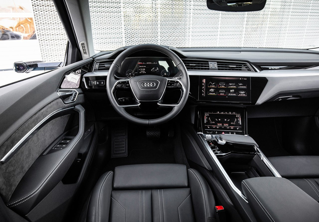 国产版奥迪e-tron与进口奥迪e-tron造型一致,在外型设计上融入最新的家族式设计,前脸采用祖传的多边形格栅,两侧分体式LED大灯,在视觉上横向拉伸了视觉,再加上三角形的雾灯区域,整个前脸既霸气又时尚。国产奥迪e-tron整体造型比较圆润,没有太多的棱角,车尾的车灯为贯穿式设计。车身与进口版最大的不同之处在于,车尾右侧“一汽奥迪”和“50quattro”标识,表明了自己国产奥迪的身份。