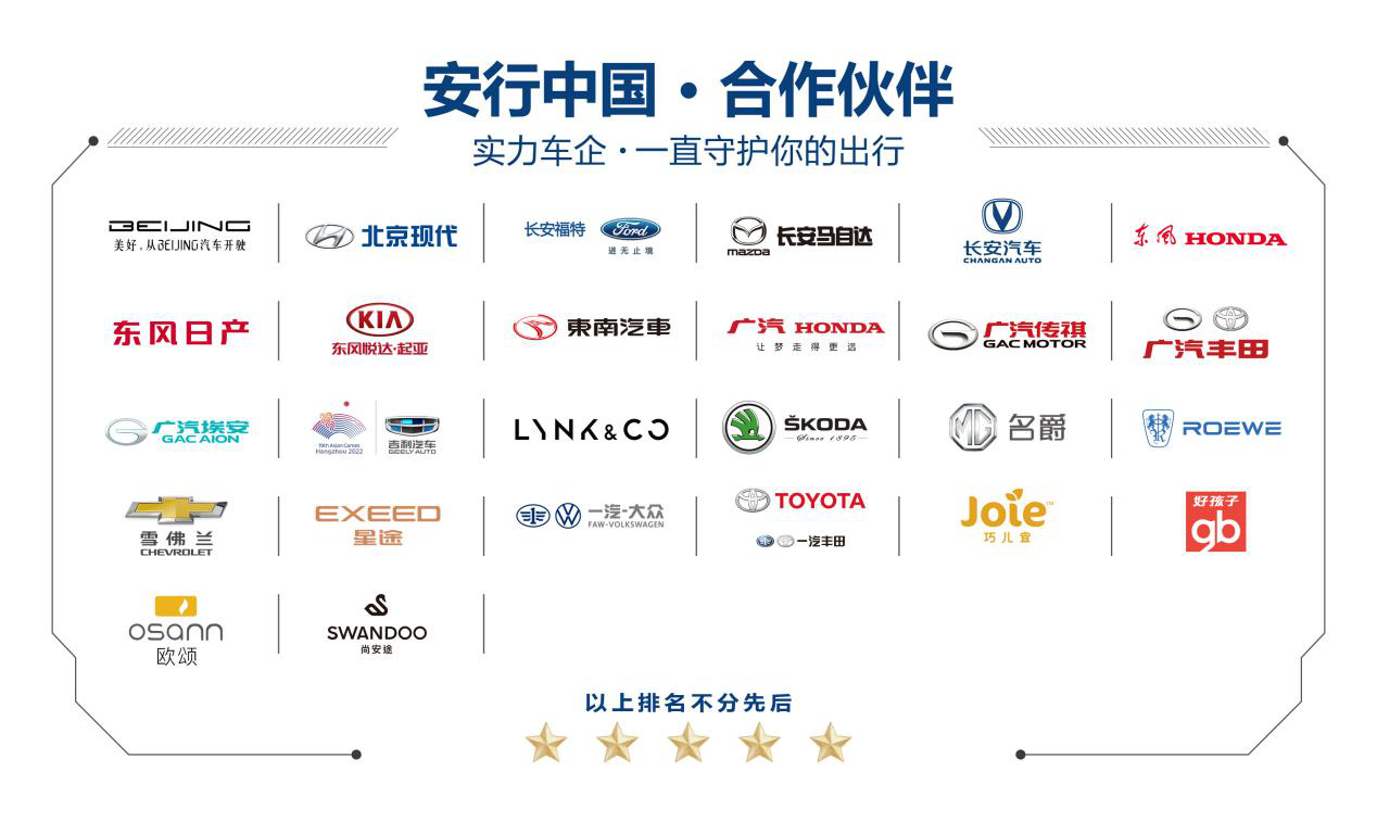 安全出行离不开安全的出行产品。在现场,安行中国·领袖峰会特意向北京汽车、北京现代、东风本田、东风日产、东风悦达·起亚、东南汽车、广汽本田、广汽传祺、广汽丰田、广汽埃安、吉利汽车、领克汽车、上汽乘用车、上汽大众斯柯达、上汽通用、星途汽车、一汽-大众、一汽丰田、长安福特、长安马自达、长安汽车、好孩子、Osann(欧颂)、巧儿宜、尚安途等20多家整车企、儿童安全座椅企业颁发“安行公益引领者”证书,感谢各家企业在安全出行领域的引领与坚持!
