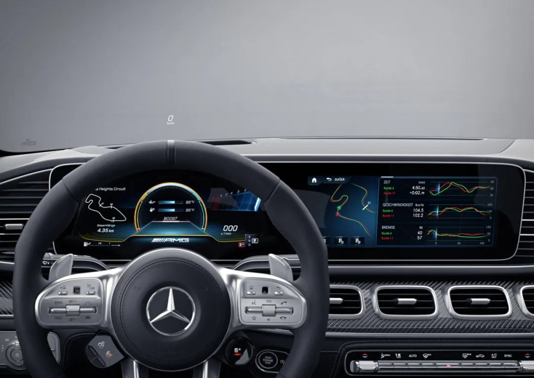 动力方面,AMG GLE 63 4MATIC+搭载的V8发动机是最大的亮点,新车搭载的正是4.0T双涡轮增压发动机+48V轻混系统,其中发动机能带来最大马力为571Ps,电动机能增加额外的马力为22Ps。传动系统与新车匹配的是AMG SPEEDSHIFT TCT 9速自动变速箱,AMG高性能四轮驱动增强版也同样没有落下,值得一提的是奔驰还为新车配备了一枚电子后轴减速锁,大大提升新车的抓地力和操控安全性。