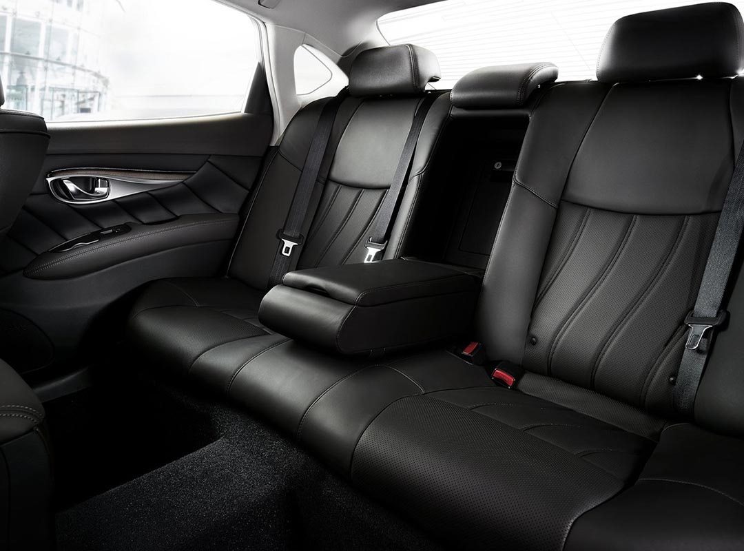英菲尼迪Q70L的座椅拥有目前C级轿车上难得一见的宽大舒适。它的座椅更加贴近于传统印象中的美式大沙发,坐垫柔软,面料有一定的皱褶,一坐下去,整个人似乎躺在家中的沙发上,英菲尼迪Q70L的后排坐垫较高,这种设计叫作剧院式设计,可以让后排乘客拥有更加开阔的视野。