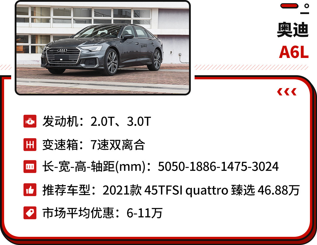 身为BBA的一员,奥迪的优惠一直是三个品牌中最大的那个,奥迪A6L更是如此。目前,2.0T的奥迪A6L在市面上的优惠在6-7万之间,而3.0T的版本优惠更是可以高达10-11万元(北京除外)。