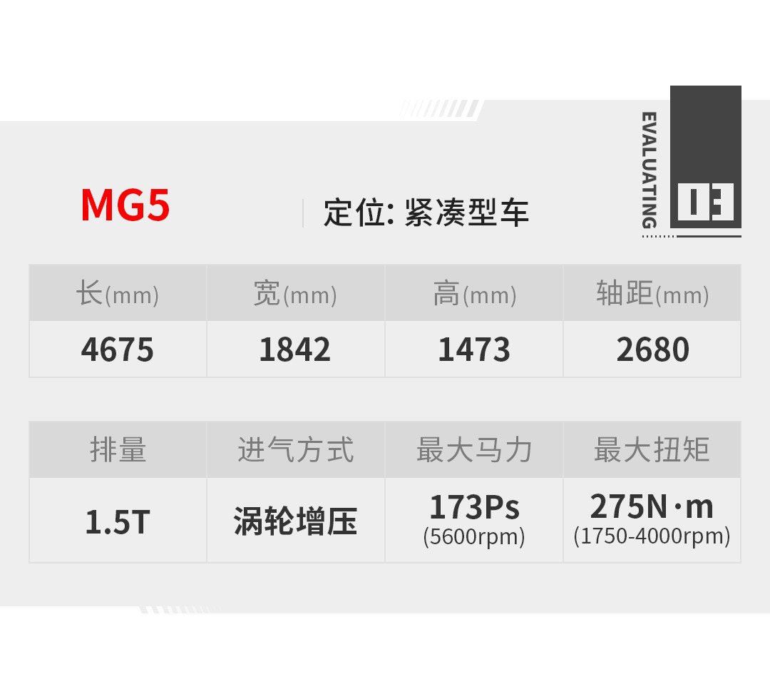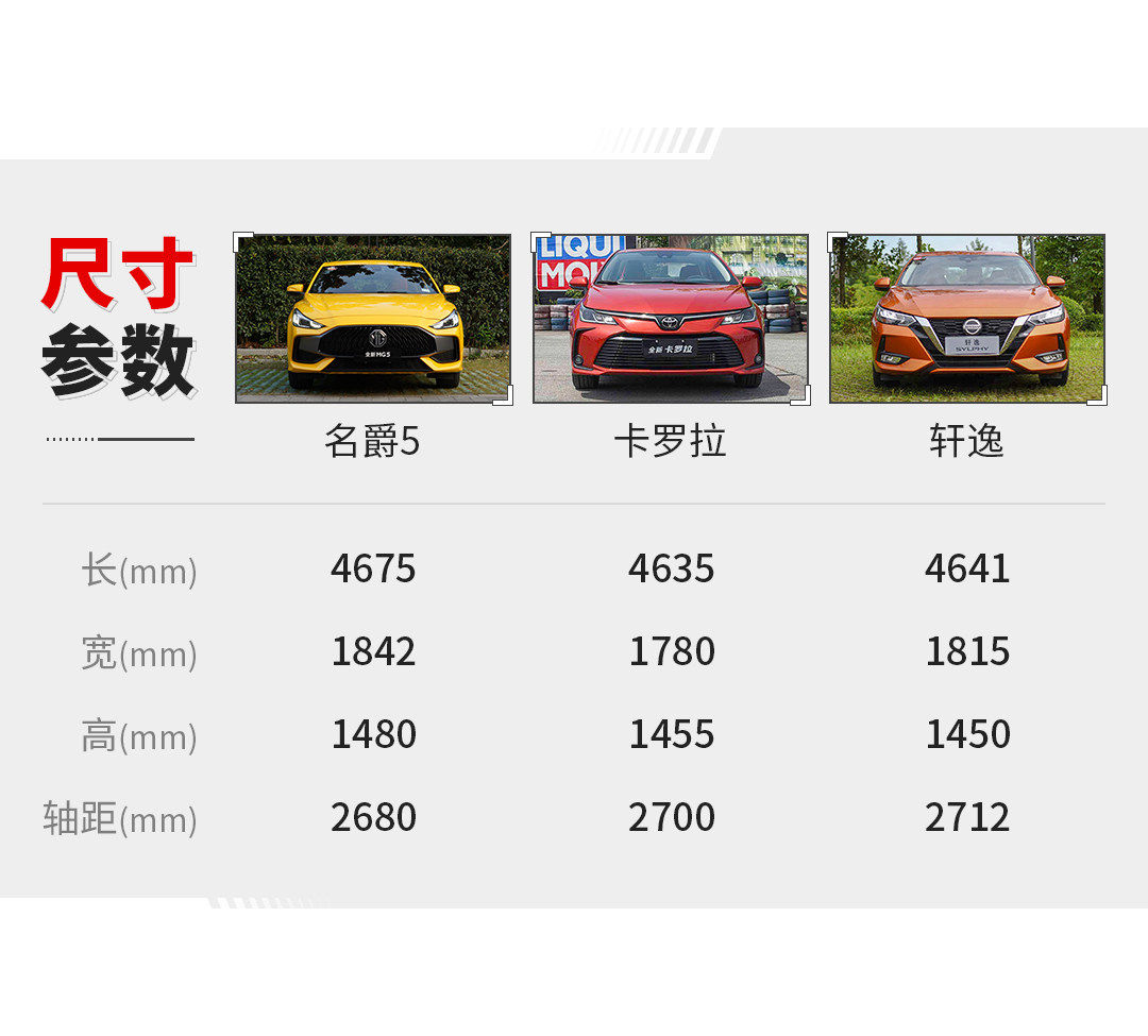全新名爵5的长宽高分别为4675x1842x1480mm,轴距为2680mm,在紧凑型轿车里属于中等身材,这个尺寸对于内部空间来说还是比较有保证的,即便是对标主流合资品牌的A级车也是不落下风。