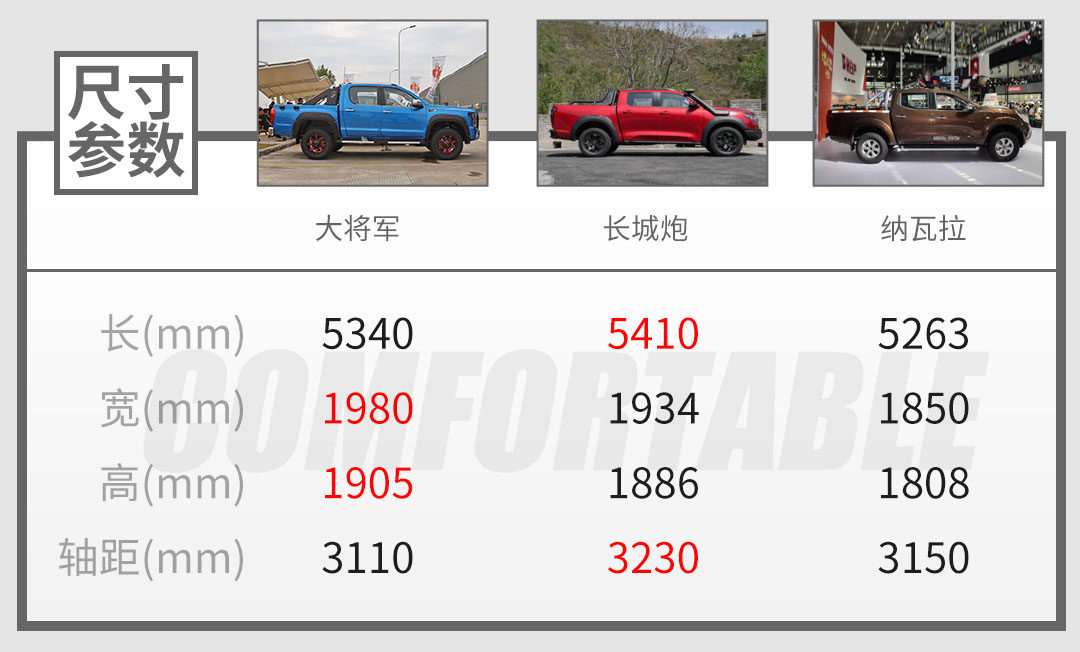 而眼前这台以大将军命名的皮卡,体型硕大、外观霸气,形如其名。