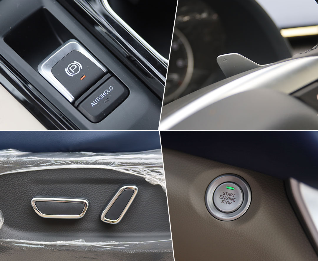配置方面,试驾车搭载了自动空调、液晶仪表、无钥匙启动、电子驻车、360度全景影像、定速巡航、换挡拨片、博世9.3版本ESP等,整体来说还是比较丰富。