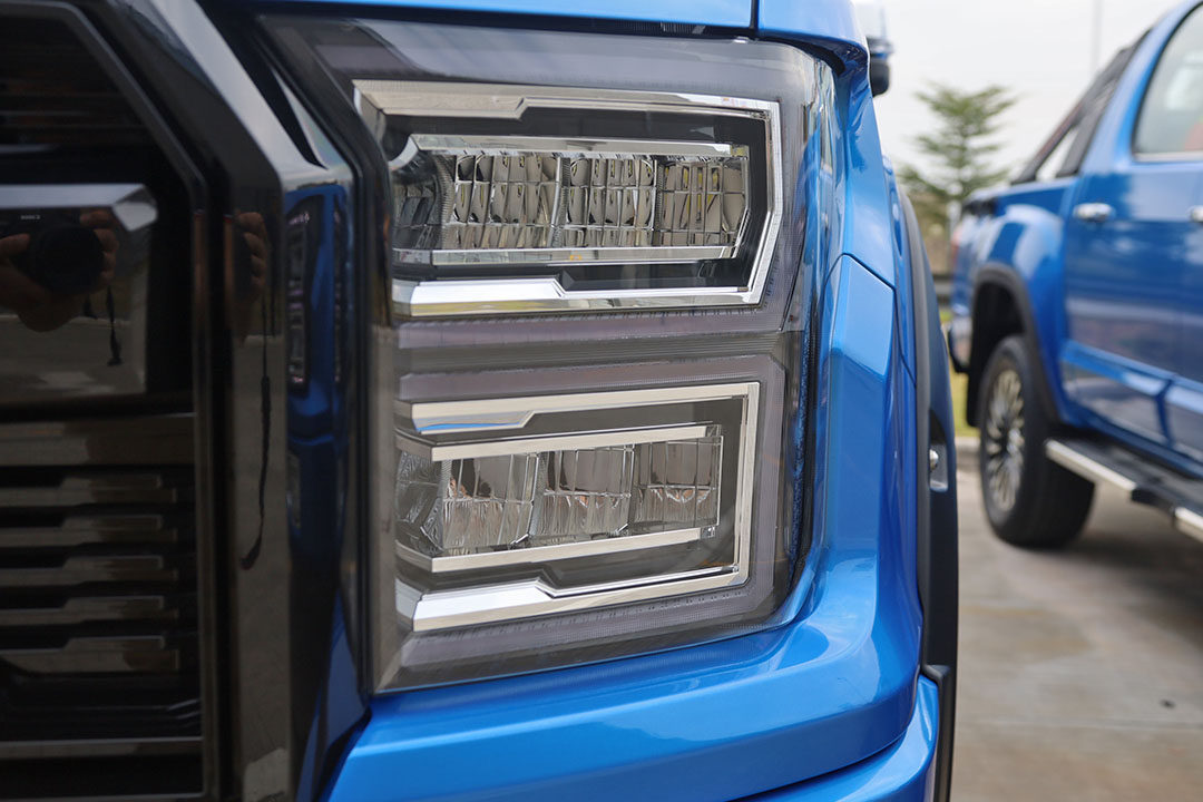 回到今天的主角上,前脸除了霸气的中网外,方正的大灯组同样粗犷,而且内部采用了LED光源。从目前公布的信息来看,除了低配的几款车型采用卤素光源外,其他均为LED光源。