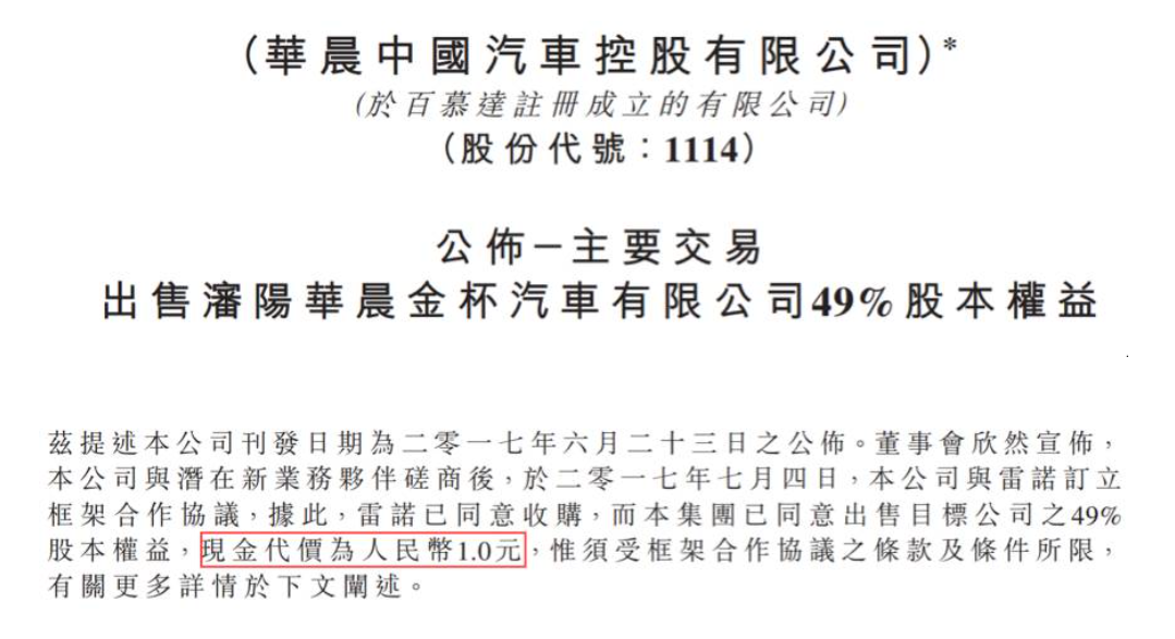 最终,在经历过几年的低谷之后,华晨金杯中的一方——沈阳金杯汽车将49%的股权,以及高达36.06亿元的净负债额转让给了雷诺。而比起沈阳金杯一方,华晨集团由于有着华晨宝马的利润支撑住了,没有沦落到出售股份。