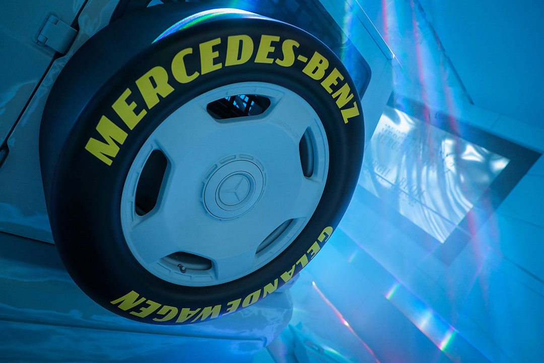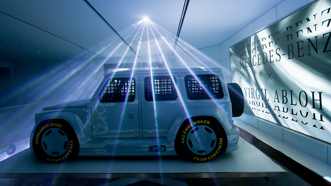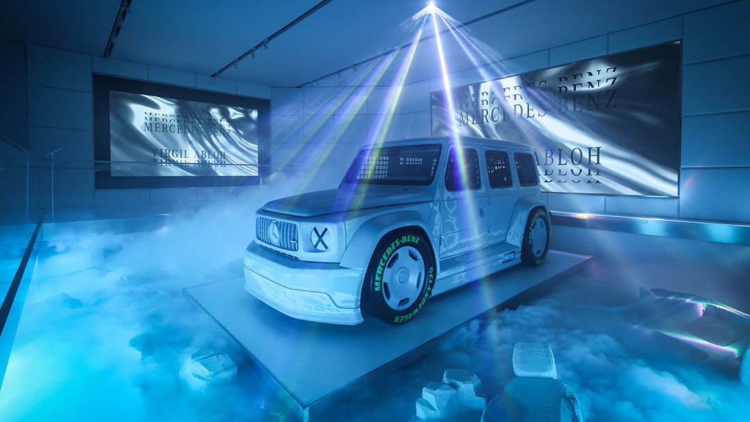 这款车是由奔驰首席设计师Gorden Wagener与LV男士品牌艺术总监Virgil Abloh合作打造,大幅降低车身高度并换装宽体套件,车身采用全白涂装。轮胎的设计也是受到了赛车的启发,前门的门把手也采用布制拉带开启的方式。