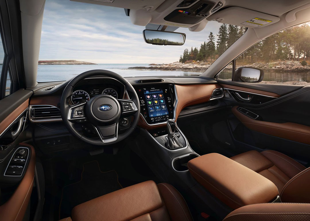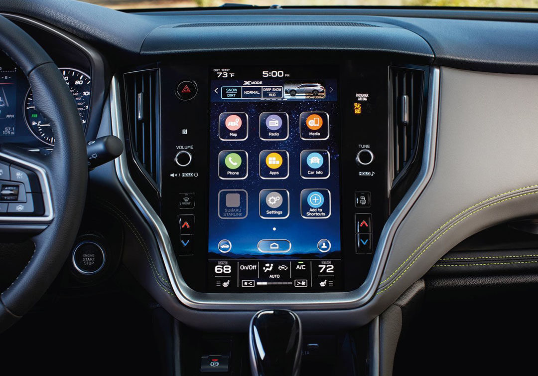 全新傲虎依然与新力狮共享内饰设计,整个内饰与现款车型相比有着翻天覆地的变化,中控部分开始舍弃了较多的物理按键,很多信息调节集合在了一个11.6英寸的大屏里面,内置斯巴鲁StarLink车机系统,支持Apple CarPlay等多种功能,这方面也算是与时俱进。