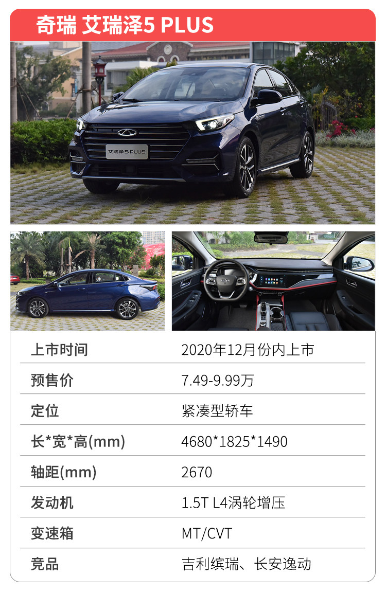 就产品定位来说,艾瑞泽5 PLUS事实是艾瑞泽GX车型,依然保持了车系最高的颜值水平,整体动感时尚。车身尺寸则是4680*1825*1490mm,轴距为2670mm,整体表现中规中矩。而它最大优点除了外观的高颜值,还有颇为精致的内饰,其中就具备了同级少有的全液晶仪表盘以及电子挡把。动力方面则继续搭载156马力的1.5T发动机,匹配手动以及CVT变速箱。值得一提的是,它还将会配备自适应巡航以及ADAS等驾驶辅助系统,就这个价格而言,性价比颇高。艾瑞泽GX变成了艾瑞泽5 PLUS,也意味我们能看到更高端的新GX车型。