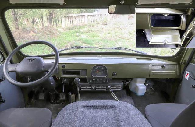 至于内饰,简单到连两三万的面包车都不如,配置少到几乎一个手指就能数过来,两幅式方向盘、织物座椅、只显示时速的仪表盘以及长杆状的换挡机构。当然如果你预算到位,还可以选装收音机和座椅加热。