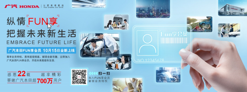 凝聚喜悦,FUN享精彩,广汽本田会员平台“FUN享会”10月15日在官微、官网、商城等同步上线。“FUN享会”包含“会员签到”、“会员活动”、“用车服务”三大基础功能,将来还将不断丰富功能板块,如 “会员等级”、“积分兑换”、“积分商城”、“增换购功能”等,为会员提供尊享特权及至臻体验,努力成为让用户用车生活更为便利、优惠、愉快的车生活平台。同时,在“Fun Link创享车生活”全新服务品牌主张下创建的“透明服务e体化”将加速向全国范围推广,特约店社交互联&共创共享试点也逐步辐射全国。广汽本田期待能持续为用户提供未来车生活的创新体验。