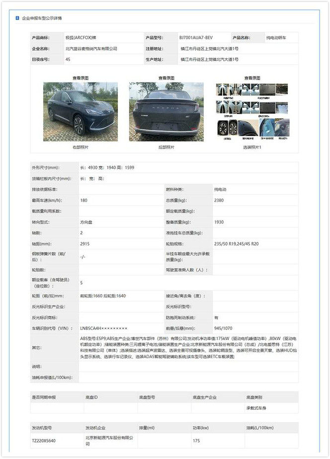 ARCFOX αS是北汽集团旗下高端品牌ARCFOX推出的首款步入量产阶段的轿车,根据此次的新车申报信息显示,新车提供了两个动力和三个续航里程版本,最高续航里程突破700Km,预计2021年正式推出。