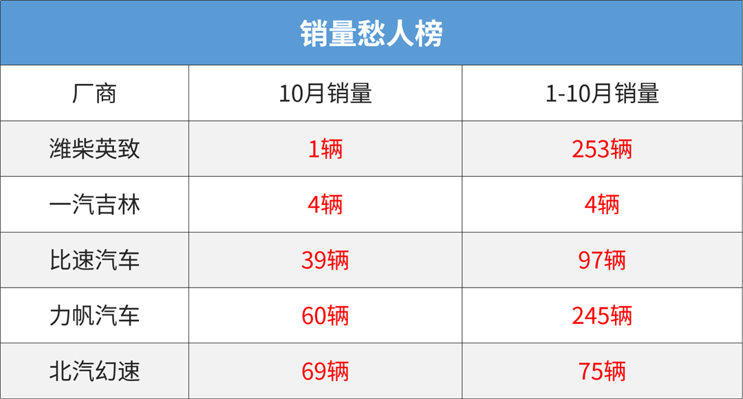 销量不是衡量一款车型、一家车企好坏的唯一标准,唯销量论也很容易会错过那些叫好不叫座的珍品。但如果销量已经跌入谷底,甚至出现个位数,负数的情况,就说明这些车型或车企已经出现被市场彻底抛弃,被消费者彻底遗忘的危险。