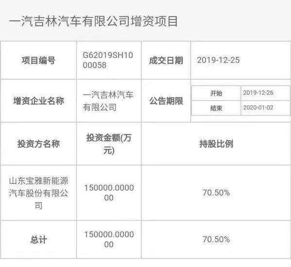 据消息透露,为求自救一汽吉林不得不采取增资扩股的手段,引入山东宝雅新能源汽车股份有限公司投资方,这也就意味着一汽吉林正式加入国企“混改潮”。