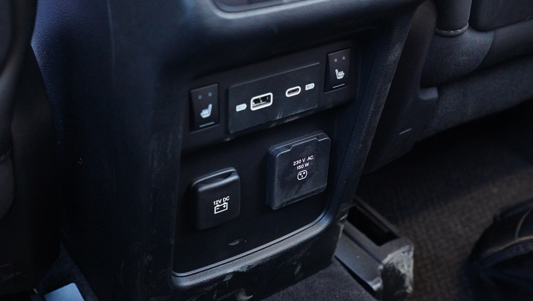 此外,大指挥官对于后排乘客的照顾也相当到位,除了后排独立空调以外,还有Type-C和USB接口、230V电源以及12V电源,同时还有座椅加热。同行的媒体老师表示在寒冷的腾冲,座椅加热带来的幸福感简直不要太强!
