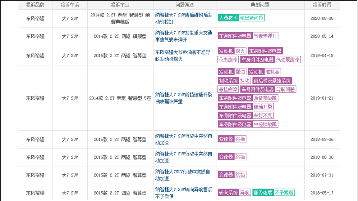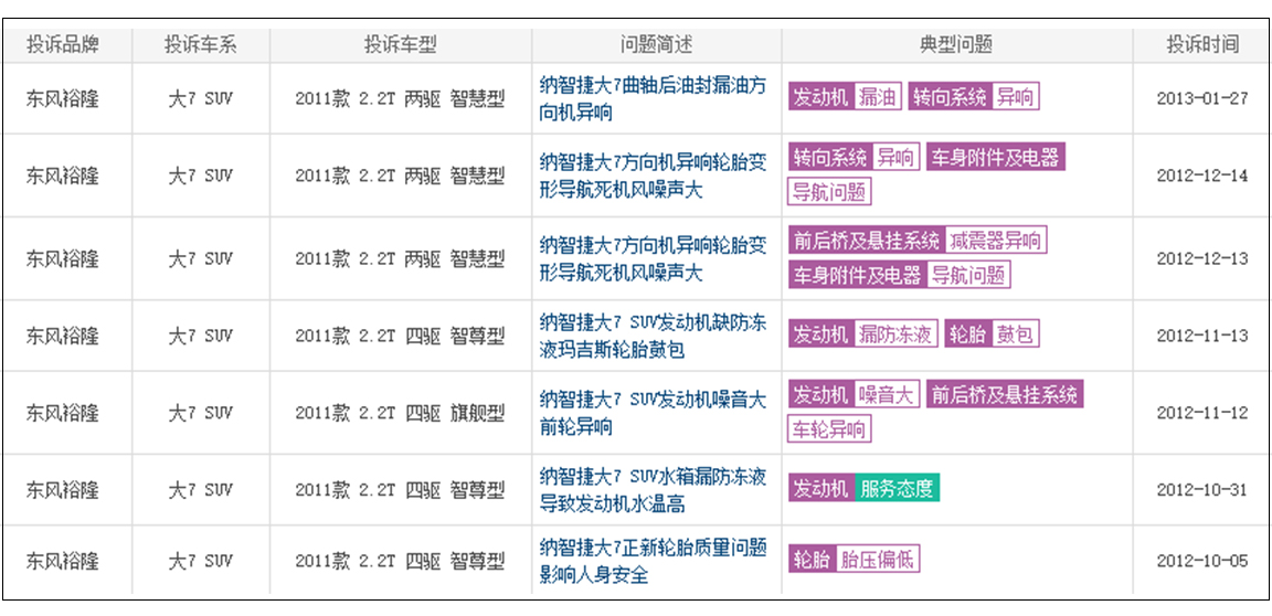 另外,以大7 SUV为主的纳智捷产品,车型小毛病是普遍居多,根据车质网等第三方投诉网站也能发现,即使是最初上市的2011款纳智捷大7 SUV,其已在发动机、悬架系统、异响、电子线路等方面存在诸多问题。所以,虽然纳智捷一样是主打高配置,但其功能稳定性不太好,最终引来了大量车主投诉。