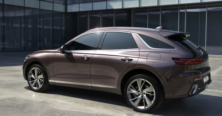 侧面无疑是GV70最吸引人的地方,丰富的线条勾勒出了立体感十足的双腰线,倾斜的C柱配合流畅的D柱线条,看上去很具运动感。