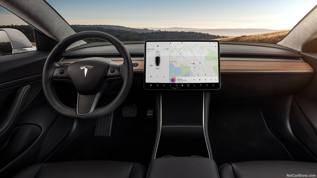 特斯拉model 3基于家族式设计,整体上风格保持一致。它犀利的前大灯设计,更为饱满的车厢外形,并采用低风阻轮毂以及米其林PS4轮胎,低调奢华。其酷炫的溜背设计,并在尾部微微上翘,也符合了空气动力学。内饰上,最具特点的莫过于它取消了方向盘前的仪表盘,所有功能显示都集中在一块15英寸的中控屏上,简约大气。