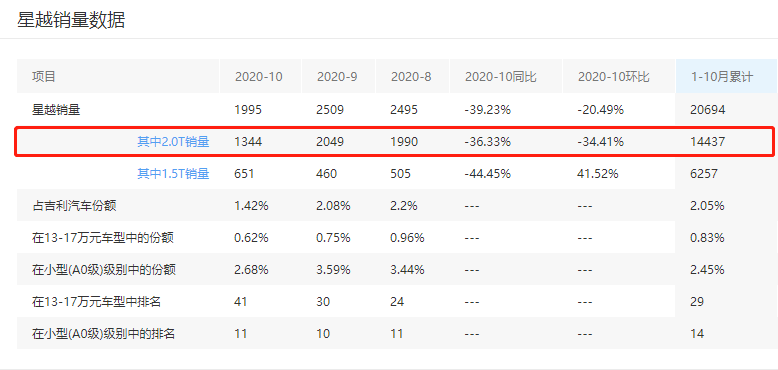 正如上图数据所看到,由于三缸发动机在国内的受众的度一直不高,吉利星越主力的销量车型集中在2.0T四缸机的版本上。从另一角度来看,除了饱受三缸机抖动以及质量问题担忧之外,吉利星越的消费群体也偏向于动力输出的选择。