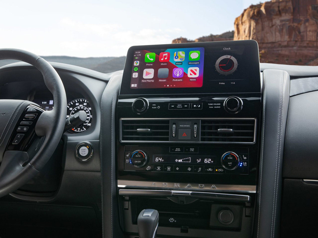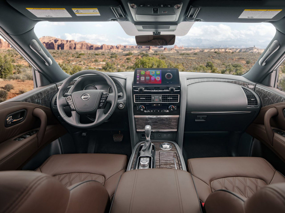 全新日产ARMADA定位于大型豪华全领域SUV,在内饰布局上的格调依然是“豪华,科技”为主。无处不见的真皮缝线和拉花,厚重的大面积木纹饰板,增加了全新日产ARMADA的豪华,但同时为了整车科技感的融入,12.3英寸的悬浮式中控大屏+绚丽风格多样的组合式仪表,让全新日产ARMADA的“豪华,科技”变得更加融合。