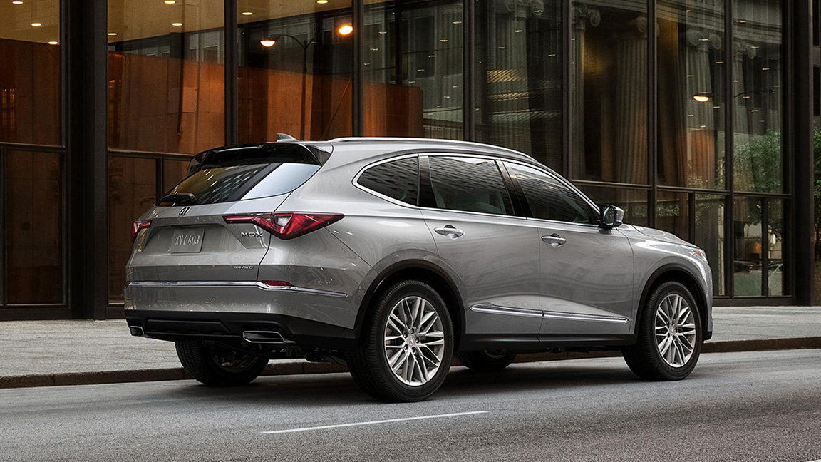 在车身侧面,全新讴歌MDX的整体轮廓依然熟悉,细节设计变得更为简洁,C柱后方的三角窗改为往上翘造型,同时门把手上方有一条从车头到车尾的贯穿腰线,在这两处设计的加持下,整车拥有修长的视觉效果。此外是尺寸方面,全新MDX的轴距还加长了约71mm,让车侧看着更加大气。