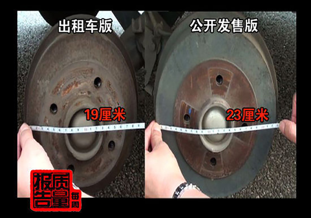 回到国内,还有一则让人揪心的“旧新闻”——2012年新华网就曝光了武汉出租车的“刹车减配”事件,出租车专供版本车型后刹车鼓比市售版明显小了一圈!从23厘米缩小到19厘米,56-0km/h刹车距离也从14.5m上升到22.2m。