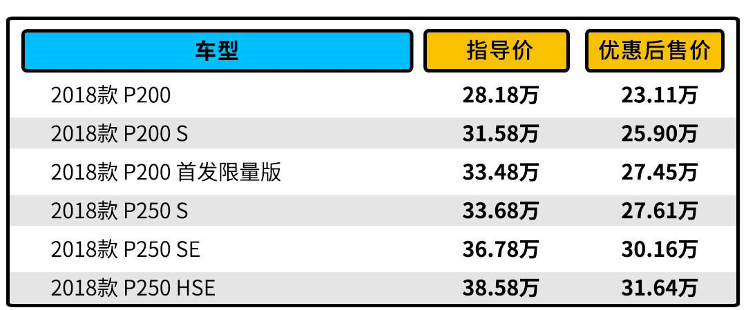 正如前面所说,E-PACE是捷豹有史以来最亲民的车型,除了它是目前在售的捷豹车型中指导价最低的之外,还继承了捷豹的良好传统——优惠力度大。目前在售的E-PACE 2018款车型,目前的经销商报价最低配的P200车型也有着5万以上的优惠,顶配车型更是有着7万多的优惠,骨折豹果然名不虚传。但问题来了,是什么原因导致这款车优惠如此大呢?值得买吗?