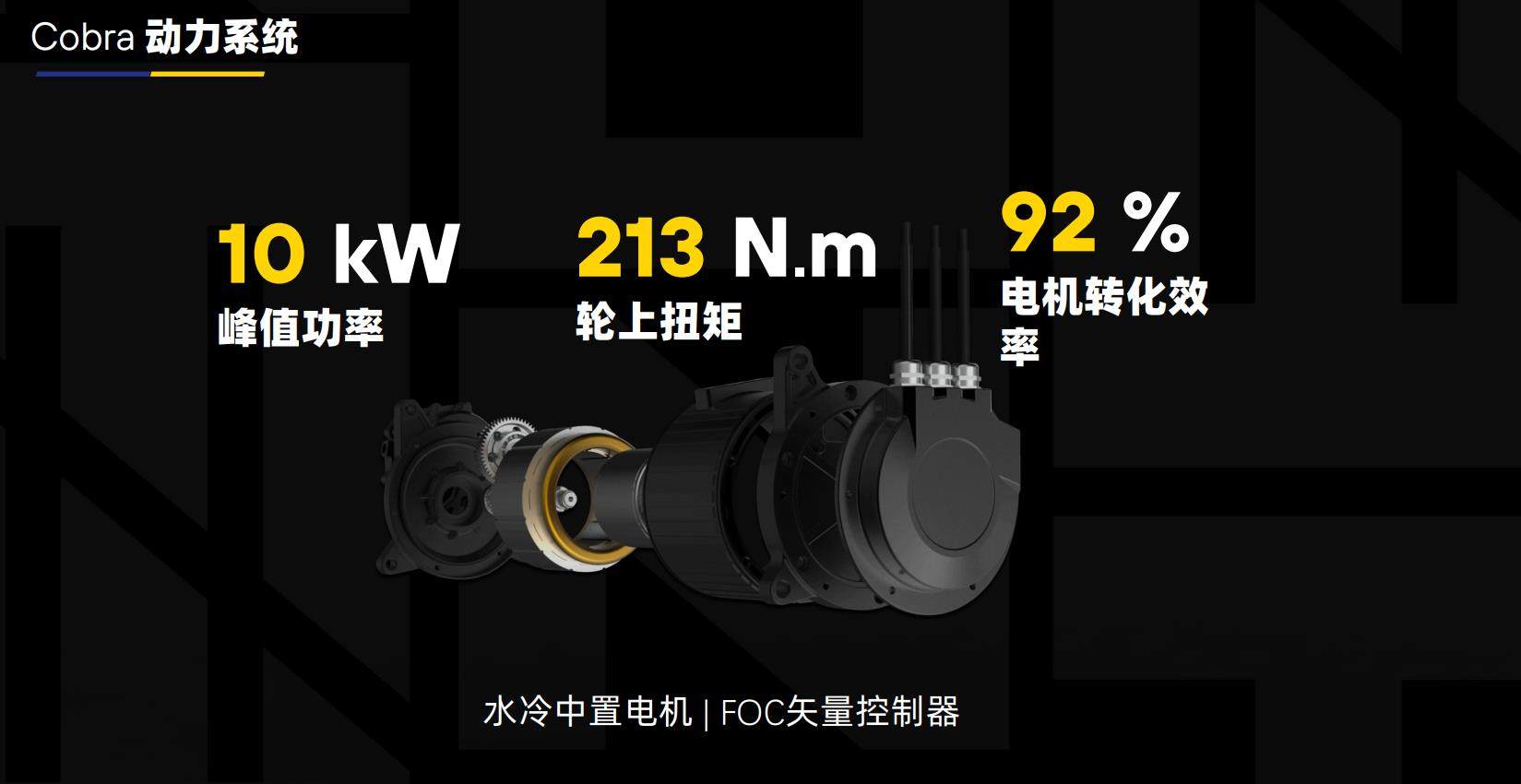 动力上也是相当厉害,采用了水冷中置电机,最大功率10kW,轮上扭矩213N·m,电机转化效率92%,0-50km/h加速时间为2.9s,很快了,这是什么概念?1.5T的十代思域0-50km/加速也要3s以上。