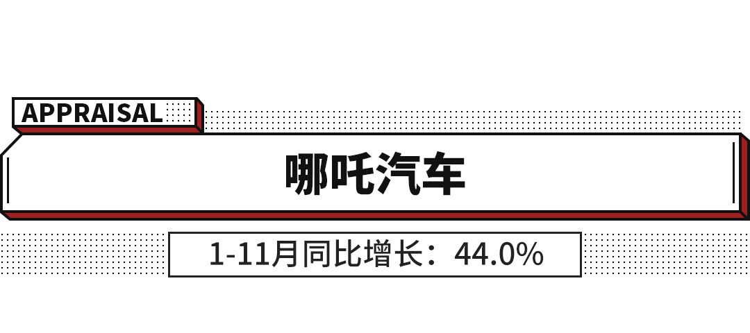 与前面几个品牌相比,哪吒汽车的知名度并不算高,不过这也难怪,作为2018年才成立的品牌,哪吒汽车还处在刚刚起步的阶段。不过,这也丝毫不影响哪吒在销量方面的不断进取,今年 1-11月,哪吒汽车累计销量为13424辆,同比增长44%。