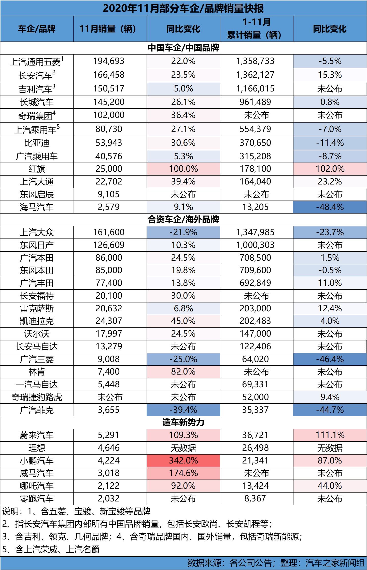 但是这也并不包括所有车企,在今年一片失落的身影当中,也出现了一些销量同比大涨超过20%的车企,而最高者销量甚至翻了一倍。
