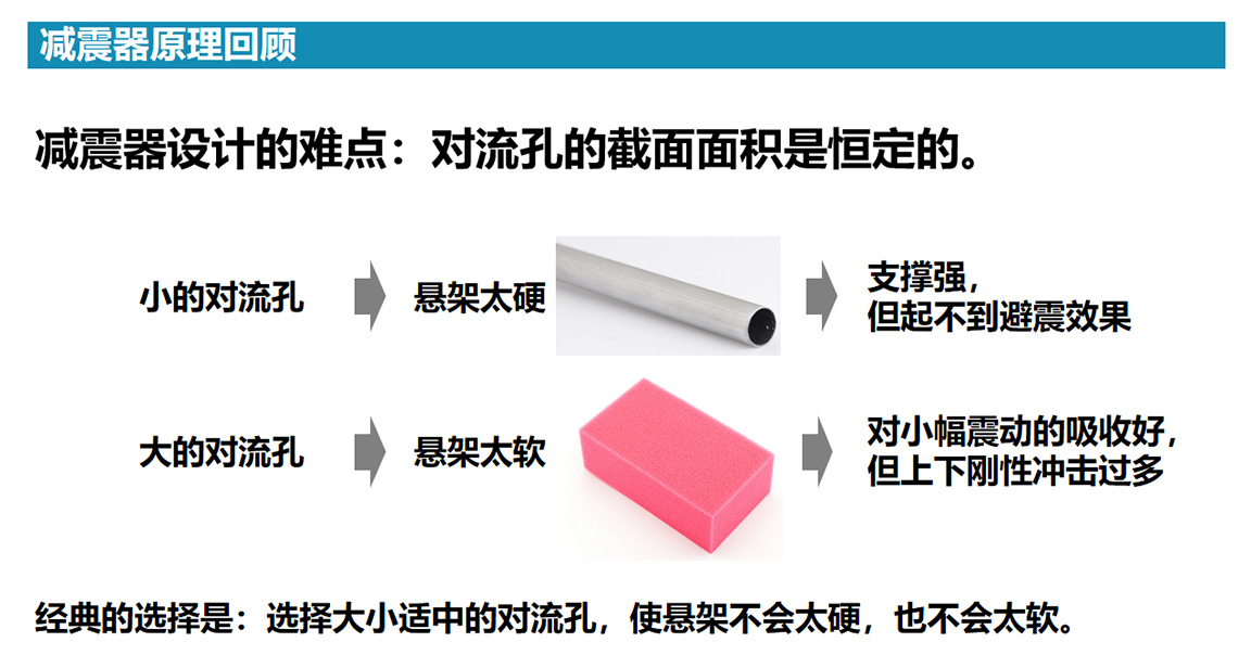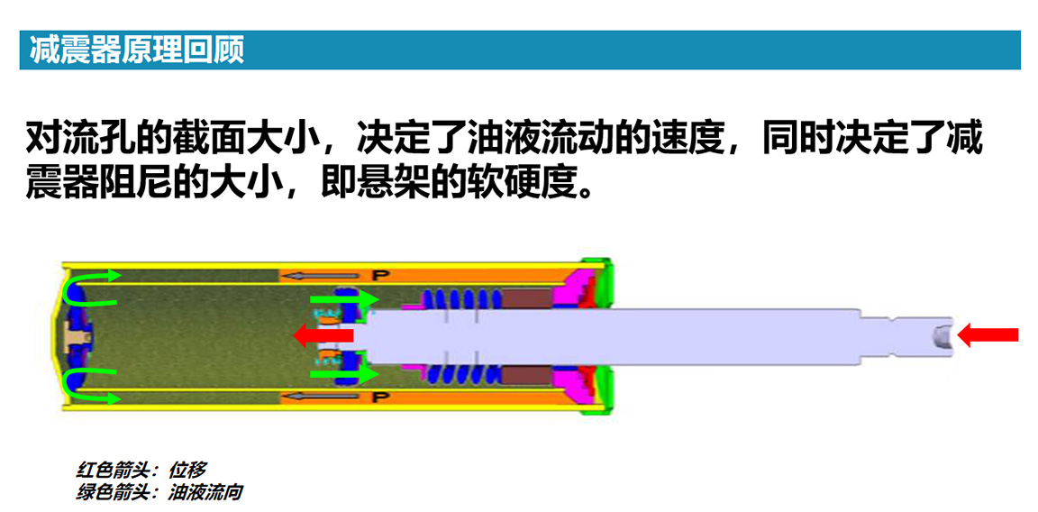 其中减震器里的油液粘度、内腔间节流孔面积等都会影响油液在内腔的流动阻力,通常来说油液粘稠度越高、节流孔面积越小,减震器的阻尼就越大,反之,油液粘稠度越低、节流孔面积越大,减震器的阻尼就越小。而一般汽车的减震器这两个指标都是固定的,所以阻尼范围有限。