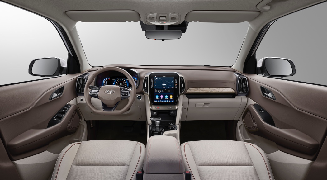 而且从内饰就看的出来,全新ix35秉承了“要改就改全套”的原则。内饰科技全面升级,新车全系标配10.4英寸高清大屏,配合7英寸彩色仪表、飞航式换挡、D型多功能方向盘等主流配置。另外,搭载现代汽车“Hyundai Smartsense 智心合一安全系统”,全新ix35拥有包括NSCC基于导航智能巡航控制、LDW车道偏离预警、LKA车道防偏离辅助、FCA前方防碰撞辅助、SVM 360度全景影像等在内的17项ADAS功能,智能驾驶达到L2+级别,这样的配置在这个级别来说确实超出预期。