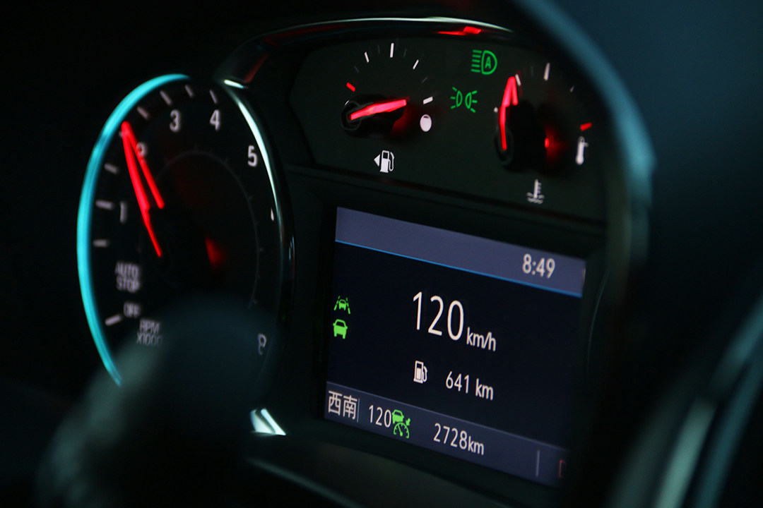 不过很快,我们就开上了高速,这时候的我们打开了ACC自适应巡航,同时在95km/h的时候变速箱便挂入了9挡,在保证了一定的加速性之余还带来更经济的油耗表现。而这个功能当车辆车速大于25km/h时即可开启,系统将根据前车距离自动调整车速;当前方无车辆时,车辆可根据设定的速度均速行驶,通过方向盘上的加减按键可调整巡航速度。