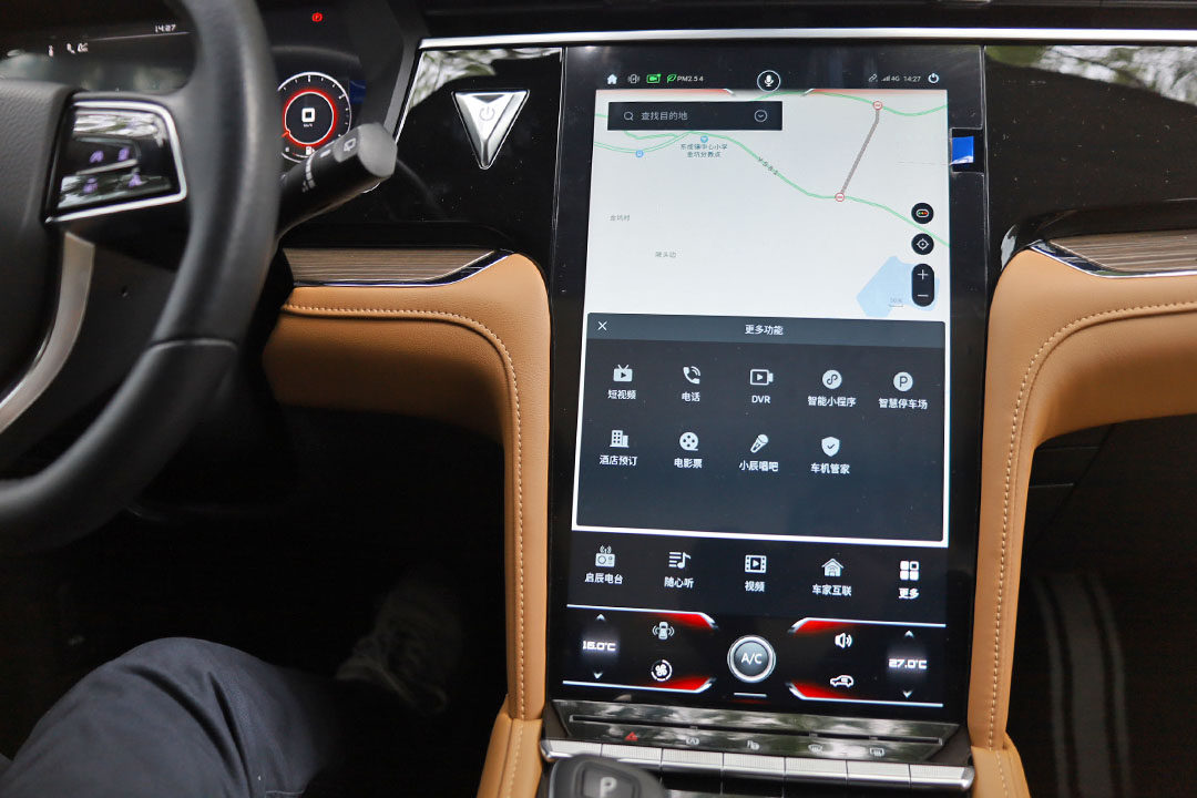 首先就是中间的那块15.6英寸大屏,分辨率清晰,而且很少出现反光的情况,其实在这一价位国产车重,配备了大屏幕的并不少,但很多出于成本的原因,屏幕的品质并不好,要么分辨率低,要么反光严重。