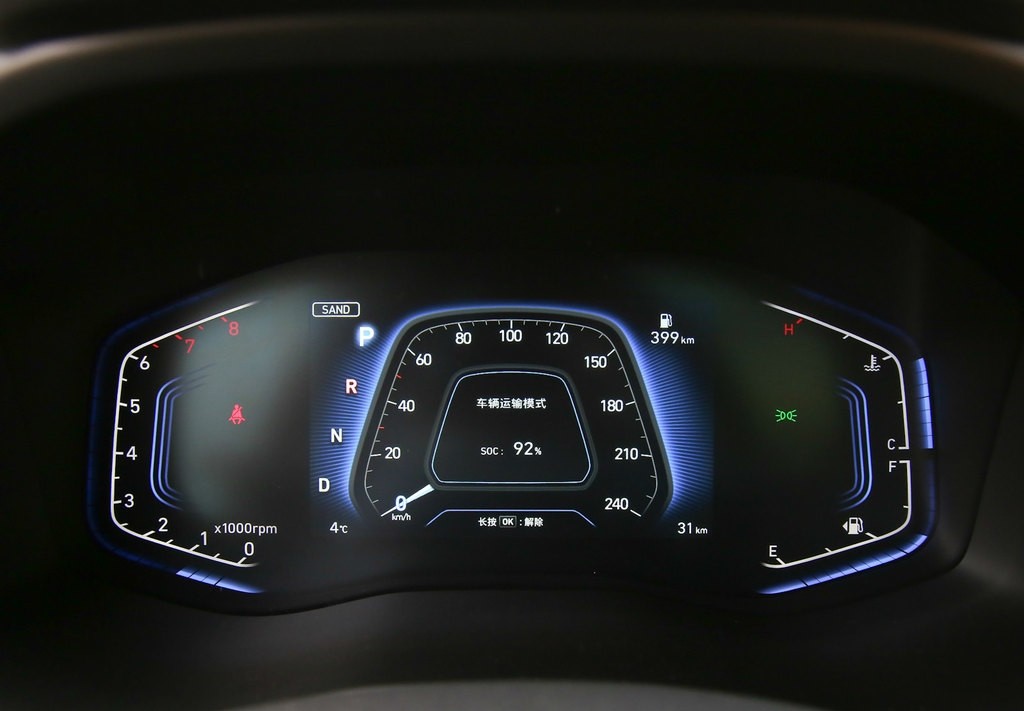 并且为了与中控屏的科技元素形成呼应,新车仪表盘也采用了一块7英寸的全液晶仪表,显示信息还算丰富,但并不是所有区域都支持自定义还是有些可惜。两侧的转速表、水温表、油量表为固定设计,仅中间部分能够通过模式切换显示不同信息,自然也做不到像大众的全液晶仪表那般显示导航信息。